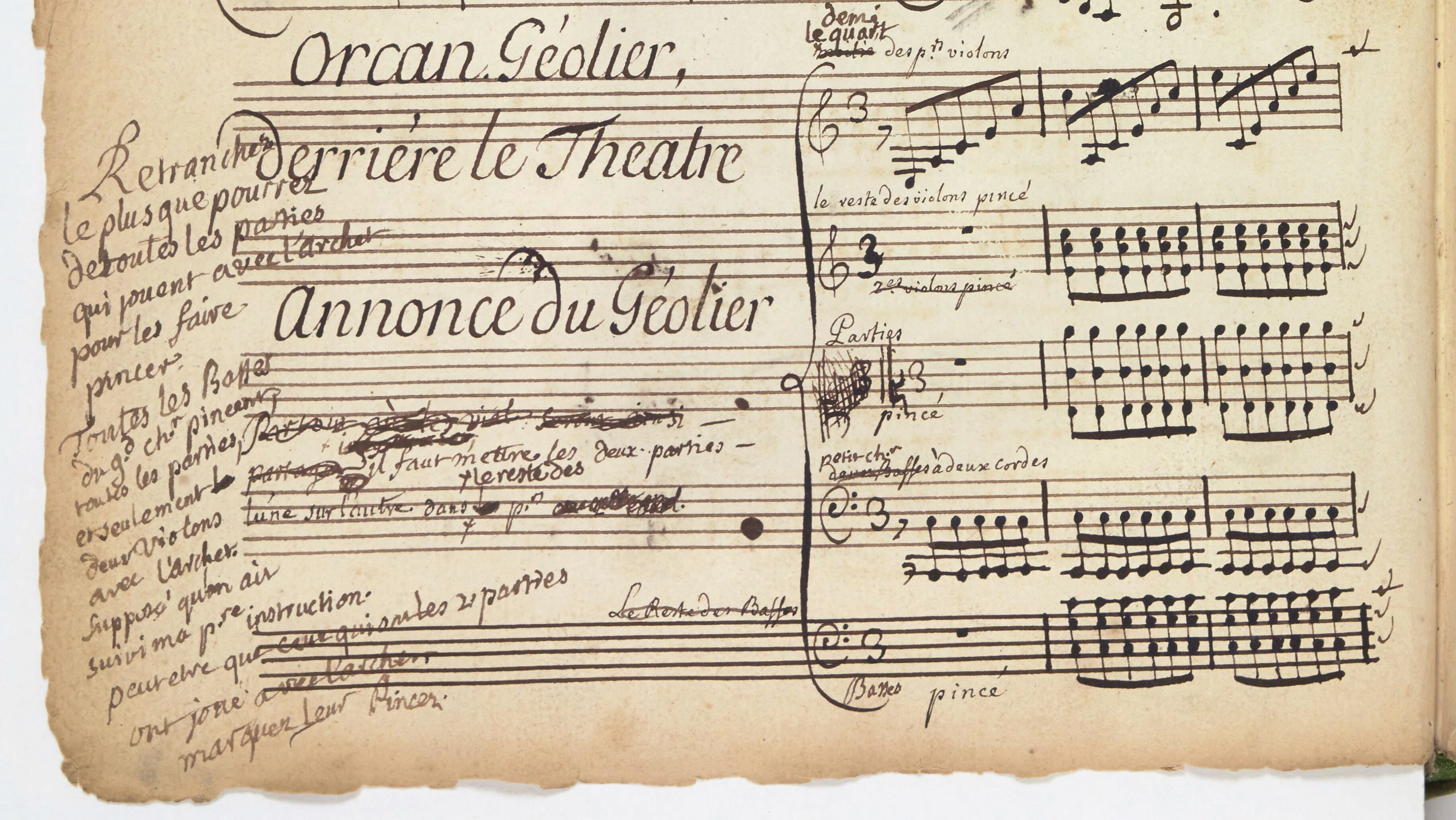 Le même passage copié par Rollet dans la partition de production et largement révisé par Rameau durant les représentations (F Po A 201, fo 8vo).