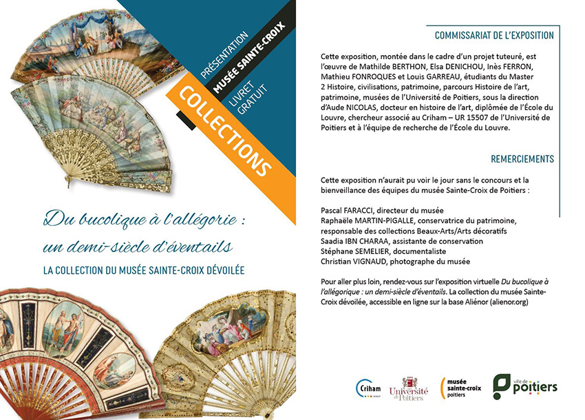 Couverture et page de crédits du livret mis à la disposition du public dans le cadre de l’exposition physique au musée Sainte-Croix (mars-octobre 2022)